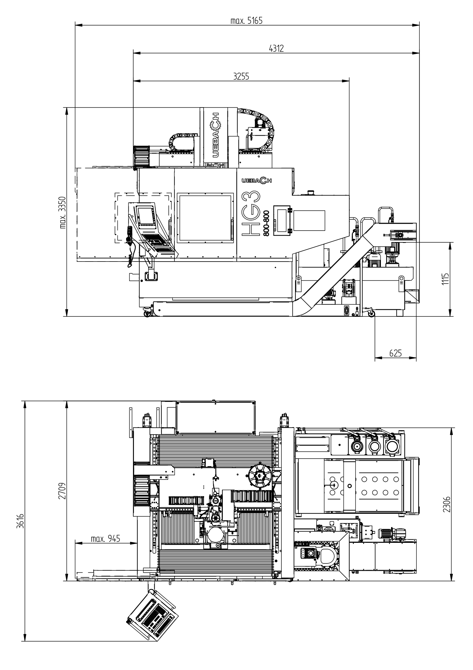 - Maschine durch weit zurückfahrendes Portal optimal mit Kran zu beladen